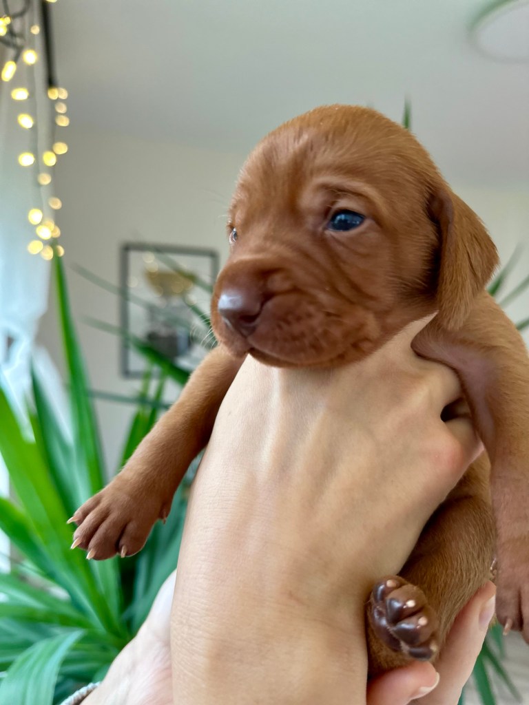 The first two weeks with Hungarian Vizsla puppies are mostly calm and manageable—if you have a mum who truly takes care of her babies. With proper warmth, good nutrition, a little support when needed, and basic care like nail trimming, this stage is more about watching, enjoying, and falling in love… over and over again.